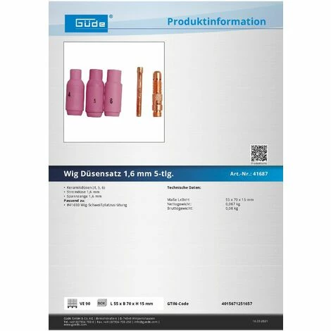 Güde Düsensatz 1,6 mm 5-teilig für WIG 41687