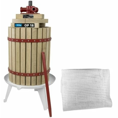 Güde Obst & Beerenpresse OP18. Mit mechanischem Antrieb, durchgehende Stahlspindel, Becken mit lebensmittelechter Farbe lackiert. Geeignet zum Verarbeiten von Äpfel, Birnen, Beeren usw.Volumen Behälter: 18 lmit mechanischem Antriebdurchgehende StahlspindelBecken mit lebensmittelechter Farbe lackiertInhalt Presskorb: 18 lMaße: 385 x 380 x 700 mm (L x B x H)Gewicht: ca, 14,2 kgØ des Korbes: 250 mmØ des Auffangbeckens: 370 mm
