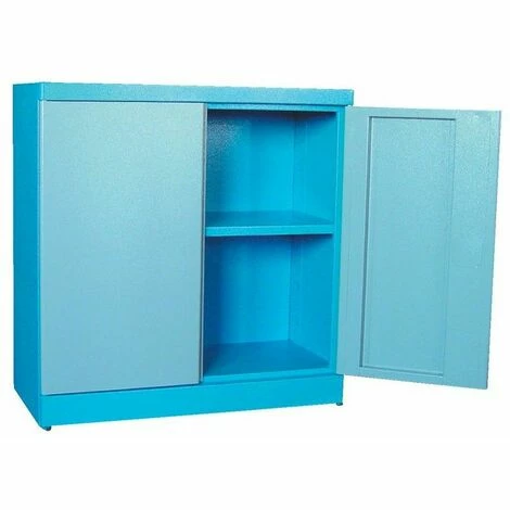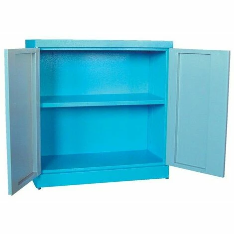 Pulverbeschichtet: RAL 5015 (Korpus) und RAL 7001 (Tür)