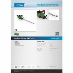 Güde Akku Heckenschere 540/36 HS Akkuheckenschere Strauchschere Gartenschere