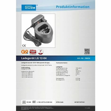 Güde Ladegerät LG 12-04, 12V, Akkuladegerät