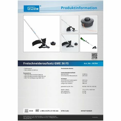 Freischneider passend zu Lithium-Ionen Motoreinheit GME 36 V (95700) und Motoreinheit GME 900-4S (95192).