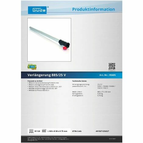 Güde Verlängerung 885/25 V für Heckenschere / Astkettensäge