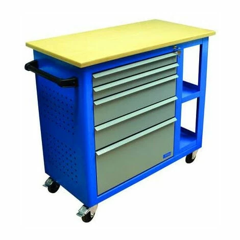 - Rückseitige und Seitliche Lochwandflächen in Eurolochung (Lochung 10mm x 10 mm, Lochabstand 38 mm) und ein seitliches Anbauteil mit einem Fachboden (3-fach höhenverstellbar).